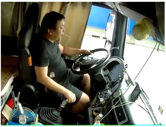 - Targeted-data acquisition stage. Due to insufficient video data obtained from car-following data collection to build the database behind, a supplementary shoot was conducted aimed at those with distracted behavior, including eating, smoking, making a phone call, operating the dashboard, etc. In this stage, a 200 min driving video data of eight drivers was collected.