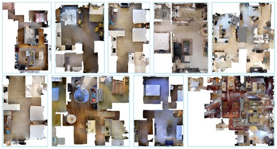 - Dai, A.; Chang, A.X.; Savva, M.; Halber, M.; Funkhouser, T.; Nießner, M. Scannet: Richly-annotated 3d reconstructions of indoor scenes. In Proceedings of the IEEE Conference on Computer Vision and Pattern Recognition, Honolulu, HI, USA, 21–26 July 2017; pp. 5828–5839. [Google Scholar]
