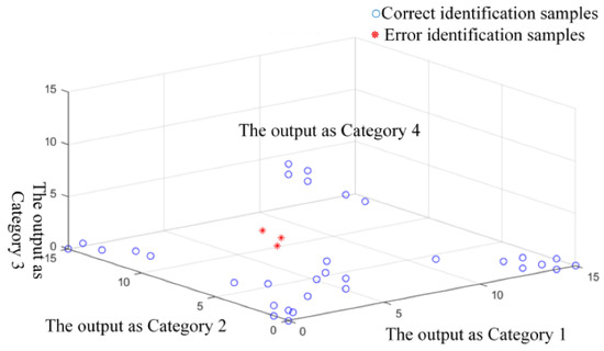 PD detection in switchgear based on gas components requires a fast and accurate method. Processed by a specific algorithm, the characteristic gas volume fraction data can be classified and identified to determine the fault type. In this part, 135 groups of the gas concentration data were randomly selected as the sample, of which 100 groups were training samples and 35 groups were test samples. These samples were from the characteristic gas concentrations of different time nodes in different groups of experiments. In 100 groups of training samples, there were 25 groups of each defect type. The data were input into the classification system for defect recognition and analysis.
