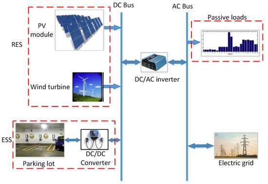 Recently, energy storage systems within microgrids have engaged an indispensable part [9,10]. Yet, on-grid electric vehicles (EVs) and renewables lend themselves as clean energy and flexible deployment energy storage system; however, the integration of electric vehicle to grid (V2G) is confronted by several challenges such as the stochastic nature of V2Gs and renewables, load demands requirements, battery wearing, and market prices.