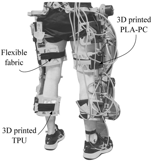 - Langlois, K.; Moltedo, M.; Bacek, T.; Rodriguez-Guerrero, C.; Vanderborght, B.; Lefeber, D. Design and Development of Customized Physical Interfaces to Reduce Relative Motion Between the User and a Powered Ankle Foot Exoskeleton. In Proceedings of the 2018 7th IEEE International Conference on Biomedical Robotics and Biomechatronics (Biorob), Enschede, The Netherlands, 26–29 August 2018; pp. 1083–1088. [Google Scholar] [CrossRef]