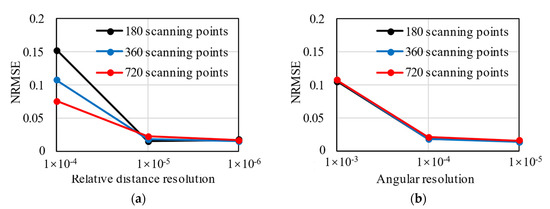 | Relative distance resolution of laser scanning | Initial angular coordinate of measurement point | ||