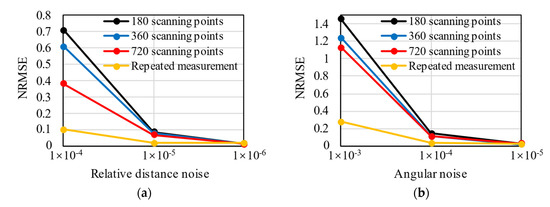 | Current radial coordinate of measurement point | Relative distance noise of laser scanning | ||