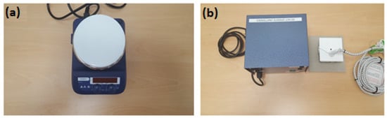 A digital hotplate used for heating the porcine skin samples (a) and a heat control device with metal plate used for performing burns on the porcine skin samples (b).