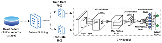 Mostly, CNN shows superiority in performance among other neural network models. It works with the raw data and explores spatial relationships among data by extracting its own feature set by assigning different weights with the help of kernel. In this study, 13 features from the heart failure clinical record dataset are fed to the embedding layer as input and hence provide a better classification result.
