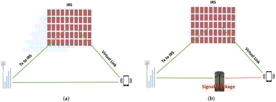 IRS-aided wireless transmission system: (a) In the presence of LoSlLink; (b) In the absence of LoS link.