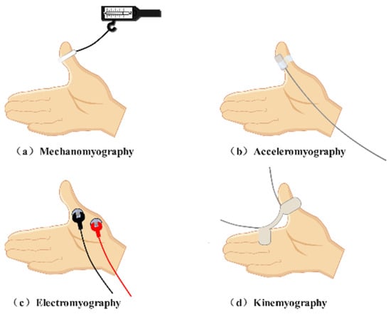 - Trager, G.; Michaud, G.; Deschamps, S.; Hemmerling, T.M. Comparison of phonomyography, kinemyography and mechanomyography for neuromuscular monitoring. Can. J. Anaesth. 2006, 53, 130–135. [Google Scholar] [CrossRef][Green Version]