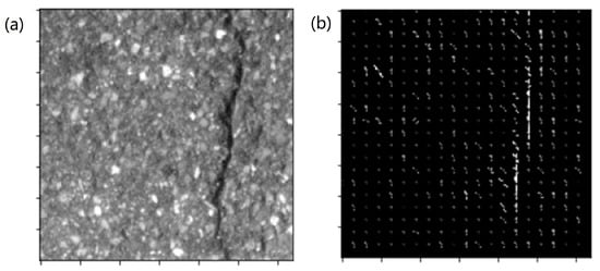 - Xu, Z.; Zhao, X.; Song, H.; Tao, L.; Na, W. A sphalt pavement crack recognition algorithm based on histogram estimation and shape analysis. Chin. J. Sci. Instrum. 2010, 31, 2260–2266. [Google Scholar]