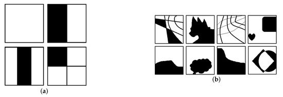 Four basal masks and some examples of shape masks. (a) Basal masks, (b) Shape masks.