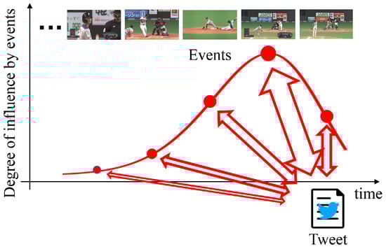 Game viewers often post their messages, including their reactions, through microblogging services, and these messages explain the details of these games. Furthermore, Twitter (https://twitter.com/, accessed on 1 February 2022) is one of the most effective microblogging services for collecting information on the situation of games and viewers’ reactions. Twitter allows users to receive and post short text messages called tweets. Thus, using features extracted from both videos and tweets posted by viewers has improved the prediction and detection performance of important scenes in sports videos [,,,,,,,].