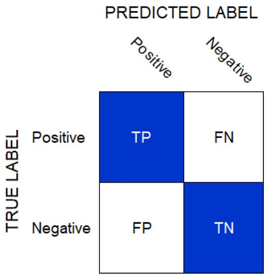 TP, TN, FP, and FN illustration using a confusion matrix.