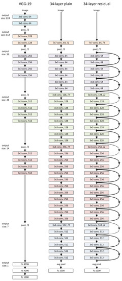 VGG-19 CNN, 34-layer plain CNN, 34-layer ResNet.