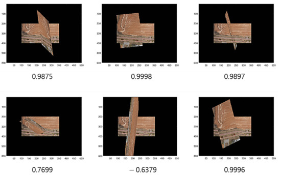 To implement the proposed method for experimental verification, we apply it to drone-based aerial images. Previous studies have shown that it is relatively difficult to solve the correspondence problem for aerial images based on drones [4,26], and our proposed method shows a way to improve the efficiency of the existing methodologies supported by deep learning technology. Actually, our proposed deep learning methodology deals with the topography of the estimated resampling operators, such as affine maps and not the images; hence, from the method’s inherent properties, it may be applicable for correspondence problems with various types of images. Our proposed method can be used regardless of the type of dataset—i.e., the trained neural network system can fit any domains of data in the real-world datasets—because the shapes of the mapping operators are not sensitive to the kinds of features in the images, as they are only influenced by the viewing angles of the objects and figures. The proposed method can act as a discriminator to eliminate outliers and bridge several feature-based matching methods to maintain the performance of stitching in a stable and efficient manner. Our experimental results are mainly focused on the drone-based images which showcases the application of the proposed method. The experimental outputs for some images of general views are miscellaneous and support a ‘ripple effect’ of the proposed method for its extensive use for general images.