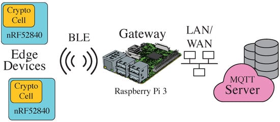 IoT infrastructures consist of IoT nodes (actors or sensors), gateways and the cloud server. In this paper, we deployed a typical secure, low-power IoT infrastructure based on [], see Figure 5.