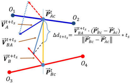 As shown in Figure 5, according to the current moving state of the two minimum-distance points of the two manipulators, we can get: