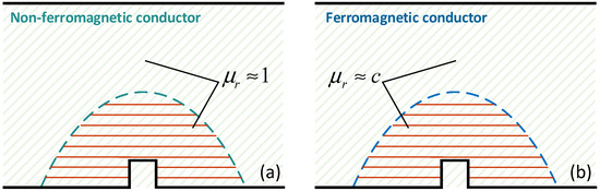 Traditional view of the magnetic permeability in the MB-ECT method. (a) non-ferromagnetic material, (b) ferromagnetic material.