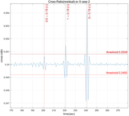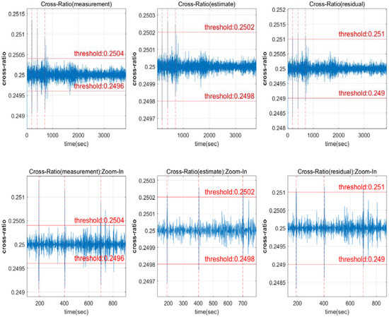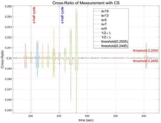 In order to use the concept of the cross-ratio for CS detection, an input needs to be chosen first and then the threshold’s properties need to be examined. Because the cross-ratio is a geometric concept, it must be satisfied regardless of the base distance between the two receivers being used. In this experiment, for example, a comparatively long distance (22.5 km) was used in the differential phase measurement between receivers.
