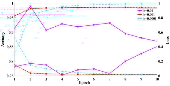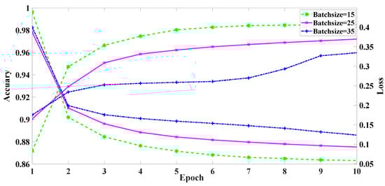 In this paper, we input standardized data by small batch. This method normalizes the input data, makes the data normalized through discarding, scaling, and translation, and prevents slow convergence or invalid features. However, the batch size is an adjustable parameter. A larger batch size does not mean better model detection performance. The larger the batch size, the more likely gradient explosion is to occur. In this situation, the neural network has no nonlinear ability, and the convolution layer does not learn local features, resulting in model overfitting. With a smaller batch size number, the convolutional layer is not enough to learn the relationship between features and labels, resulting in model underfitting. Therefore, we set the convolutional layer number to three and the filter number to one. The learning rate, batch size, and optimization function are adjustable parameters. Furthermore, considering the complexity of the model, we set the model iteration number R to 10.