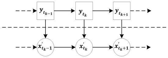 The state transfer equation and observation transfer equation of the SSM need to be clear, but sometimes these functions are difficult to obtain directly. Either the state transition equation or the observation equation needs to be determined through the physical process. In addition, the mapping in the hidden space or the observation space may be inaccurate because of some sources of uncertainty, such as sensor placements. The goal of PF is to construct a set of N weighted particles to represent the posterior pdf of the state particles at time , as shown in Equation (8).