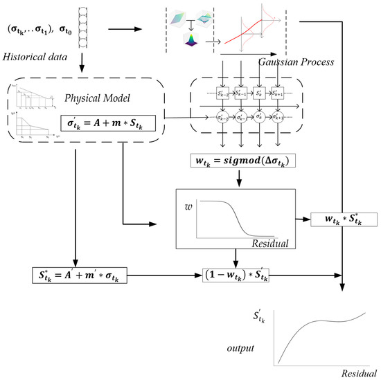 The importance of can be explained by follow the expression in Equation (10). The output of the GP model is the normal distribution, which makes the output of the linear physical model also a normal distribution, as in Equation (11).