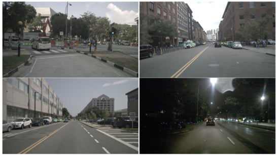 - Caesar, H.; Bankiti, V.; Lang, A.H. nuScenes: A multimodal dataset for autonomous driving. In Proceedings of the IEEE/CVF Conference on Computer Vision and Pattern Recognition (CVPR), Seattle, WA, USA, 14–19 June 2020; p. 11618. [Google Scholar]