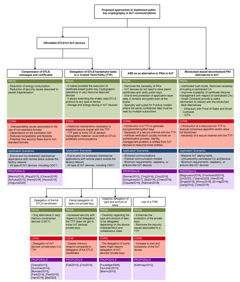 - Cho, E.; Park, M.; Lee, H.; Choi, J.; Kwon, T.T. D2TLS: Delegation-Based DTLS for Cloud-Based IoT Services. In Proceedings of the International Conference on Internet of Things Design and Implementation, IoTDI ’19, Montreal, QC, Canada, 15–18 April 2019; Association for Computing Machinery: New York, NY, USA, 2019; pp. 190–201. [Google Scholar] [CrossRef]