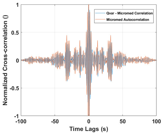 Cross-correlation between ST−Qvar and MicroMed acquisitions. MicroMed signal autocorrelation.