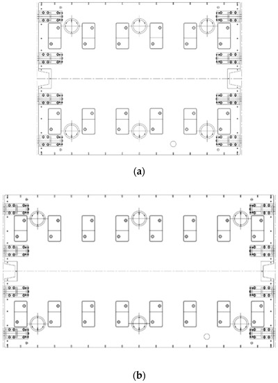 Schematic diagram of floating slab track. (a) Design drawing of 3.6 m SSFST. (b) Design drawing of 4.8 m SSFST.
