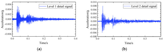 According to the frequency domain analysis in Section 3, it can be seen that the vibration signal has multiple peak points in the frequency domain, and there is a superposition of multiple modal waveforms at the same time. Therefore, we can consider decomposing the vibration signal at the foundation to analyze the vibration waveform of different frequency bands.