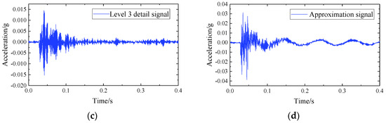 Wavelet soft threshold de-noising decomposes the detailed signal. (a) Level 1 detail signal. (b) Level 2 detail signal. (c) Level 3 detail signal. (d) Approximation signal.