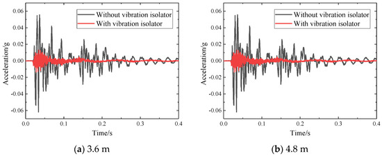 - After the prefabricated SSFST is installed with the vibration isolator, the period of shock and vibration level is continuously shortened. After the installation of the vibration isolator, the total vibration duration of the SSFST is less than the prefabricated SSFST without the vibration isolator. It can be seen that the SSFST with the vibration isolator can achieve excellent vibration energy absorption.