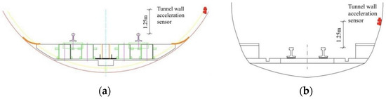 Layout of tunnel wall acceleration test points. (a) Cast-in-place SSFST section. (b) OMT section.