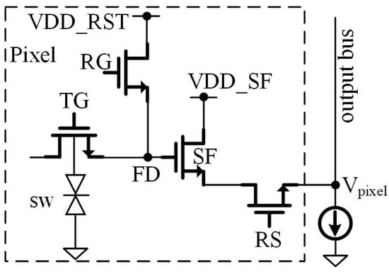 This work focuses on the design of readout circuitry; therefore, the jot design is not explained in detail here. Pump-gate jots with high conversion gain and fast charge transfer speed are used in the sensor as shown in Figure 2, similar to the jot in [5].