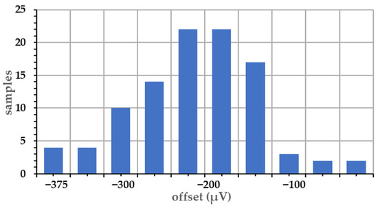 Amplifier offset distribution from 100 Monte-Carlo simulation runs.