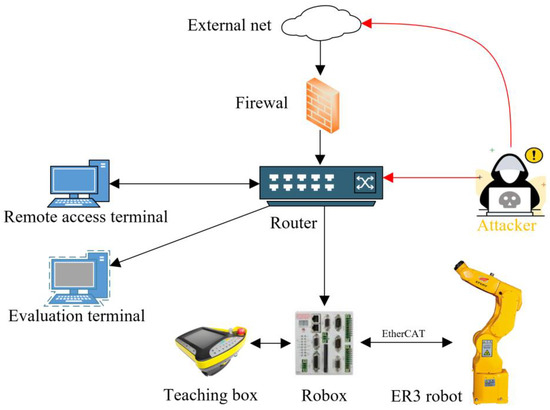 - Li, L.; Xie, L.; Hao, B.; Yang, L.; Hu, T.; Wang, Z. Data Logic Attack on Heavy-Duty Industrial Manipulators. IEEE Access 2020, 8, 17419–17433. [Google Scholar] [CrossRef]