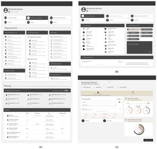 Nutritionists gather several types of data in the course of the appointment, which allows determining the person energy expenditure (Section 4) and other metrics and goals that can further support decisions during food-plan-making.