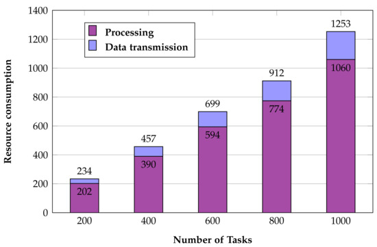 In order to improve resource utilization, the current main method is to schedule virtual machines and tasks. Ref. [] studied the deployment and migration of virtual machines, and proposed an optimized resource management method for total dynamic scheduling time. Refs. [,] proposed a dynamic scheduling algorithm for virtual resources, established a constraint satisfaction model for task scheduling and virtual machine scheduling, and then solved the scheduling scheme. Ref. [] proposed two-level scheduling for system resource utilization: task scheduling and virtual machine scheduling, respectively. Finally, the experiments proved that the effect of optimizing the load can be achieved. In order to optimize the load balancing of virtual machines, a threshold-based task scheduling algorithm was proposed in []. Recently, Ref. [] proposed a novel multi-objective metaheuristic algorithm for minimizing the completion time of tasks and maximizing resource utilization. For predicting CPU utilization, Ref. [] proposed two predictive methods based on Holt–Winters exponential smoothing (HW) and long short-term memory (LSTM). The experimental results showed that these approaches can reduce CPU slack by over 40% for a variety of CPU workloads. Moreover, as compared to the HW method, the deep-learning-based approach LSTM has been demonstrated to produce more stable predictions. Similarly, Ref. [] proposed a deep-learning-based method combining conditional restricted Boltzmann machines (CRBMs) and clustering algorithms in order to minimize resource utilization. The experiments showed that the proposed method can improve CPU and memory utilization by 30%, by exploiting resource utilization patterns. Ref. [] designed a hybrid method by combining cuckoo search (CS) and particle swarm algorithm for minimizing the energy consumption and the makespan of task scheduling. The proposed algorithm was tested on real supercomputing workload traces and the experimental results proved that this algorithm provided more efficient schedules than other well-known methods.