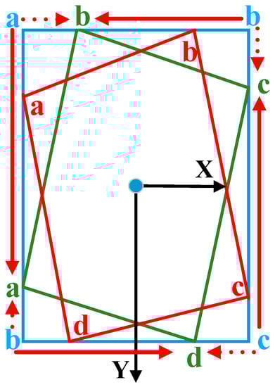 RODFormer adopts the eight-parameter regression method []. In addition to the basic four-regression point classification, this definition method also includes four regression points of the horizontal box. The upper-left corner of the definition is the starting point, and the remaining points are arranged in counterclockwise order, as shown in Figure 6. To solve the loss discontinuity of the rotation box, when the coincidence ratio of the rotation box area and the original horizontal box area is close to 1, only the horizontal box is regressed.