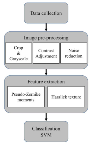 The reflective ELS pattern measurement procedure’s flow chart includes data collection, image pre-processing, feature extraction, and classification with a machine-learning algorithm.