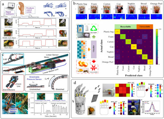 - Amoli, V.; Kim, S.Y.; Kim, J.S.; Choi, H.; Koo, J.; Kim, D.H. Biomimetics for high-performance flexible tactile sensors and advanced artificial sensory systems. J. Mater. Chem. C 2019, 7, 14816–14844. [Google Scholar] [CrossRef]
