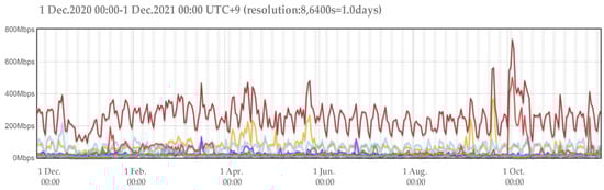 - Cho, K.; Mitsuya, K.; Kato, A. Traffic Data Repository at the WIDE Project. In Proceedings of the USENIX 2000 Annual Technical Conference: FREENIX Track, San Diego, CA, USA, 18–23 June 2000; pp. 263–270. [Google Scholar]