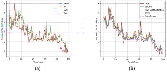 - Experiments on publicly available datasets verified that the proposed model is consistent with the existing empirical evidence, and has better predictive power than other existing prediction methods. The accumulation of prior knowledge during training meaningfully guides the network traffic prediction, thus significantly improving the performance of the training model. In terms of the absolute coefficient of correction, the proposed model achieved values at least 10% higher than those of traditional statistical models. Thus, the reliability and superiority of the proposed model were illustrated in the article while the results demonstrated that the model is also interpretable.