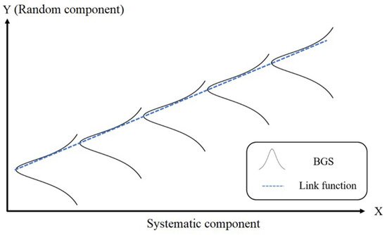 The random component, which is represented as Y value, is the BGS distribution, and the systematic component is represented as X. For instance, in this paper, the temperature categories for each BGS, represented by , are all independently distributed. The task of the link function is to connect the two variables together.