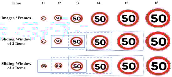 In the literature, there are many studies [66,67,68,69] focusing on single frame TSR, and very few studies [64,65] that process multiple frames. According to our knowledge based on the literature review, there is no study available that considers the sliding windows approach for traffic sign recognition.