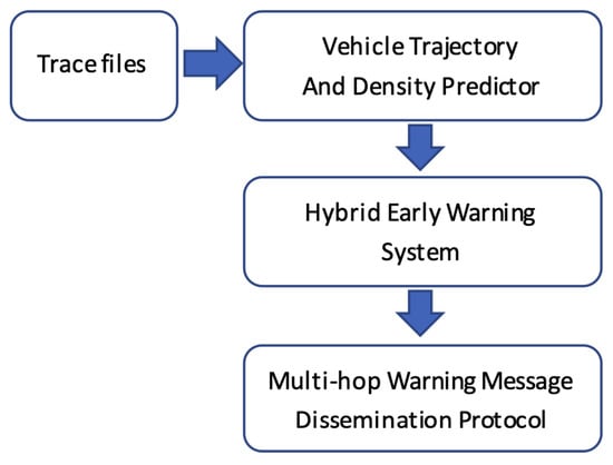 - We present a hybrid early warning system together with a multi-hop data dissemination protocol for VANETs based on vehicle trajectory prediction to deliver alert messages to relevant vehicles in both sparse and dense scenarios. Our system can adaptively select either the V2V or V2I connections to disseminate the warning message based on the vehicle connectivity information to guarantee the timely delivery of the warning message.