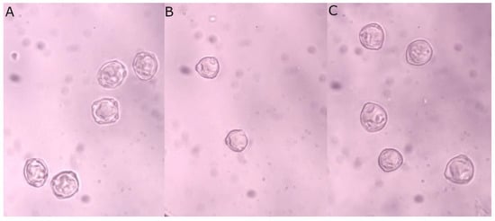 Examples of microscopic images of (A) Alnus, (B) Betula, and (C) Corylus pollen grains.