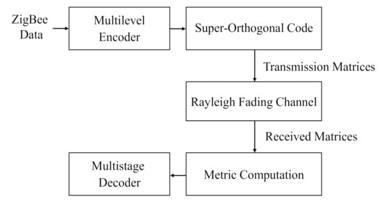 The multilevel coding (MLC) technique is a powerful approach to construct coding schemes with large coding gains [32,33]. Many previous studies have applied the concatenation of space–time block codes (STBCs) and multilevel codes for the advantages of coding gain and full diversity [27,34,35,36]. However, when multilevel codes schemes utilize the set partitioning of super-orthogonal codes (SOCs), full diversity cannot be achieved, which affects the reliability of ZigBee-based IoMT communications. In this work, a novel technique is proposed, which is called inter-multilevel dependency. This technique provides inter-level dependency between adjacent multilevel coded blocks to provide full diversity and improve the coding gain whilst maintaining reasonable spectral efficiency and decoding complexity for ZigBee-based IoMT communications.