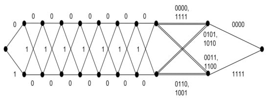From the above conditions, the minimum CGD of IM-SOSTC-1 is 64. The simple two-state trellis of is shown in Figure 7, which combines two partial trellises for and .