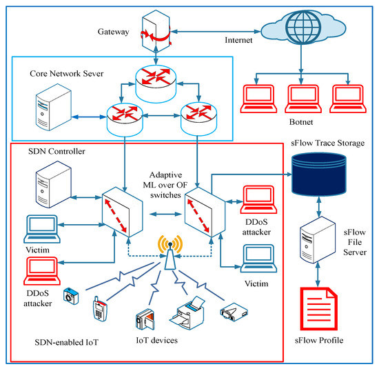 - Aslam, M.; Ye, D.; Hanif, M.; Asad, M. Machine learning based SDN-enabled distributed denial-of-services attacks detection and mitigation system for Internet of Things. In Proceedings of the International Conference on Machine Learning for Cyber Security, Guangzhou, China, 8–10 October 2020; pp. 180–194. [Google Scholar]