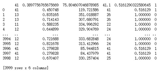 Figure 6 shows the print of the overall dataset demission, which contains 3999 rows and 6 columns. Based on initial parameters, the last column computes the traffic classification as a normal or DDoS attack.